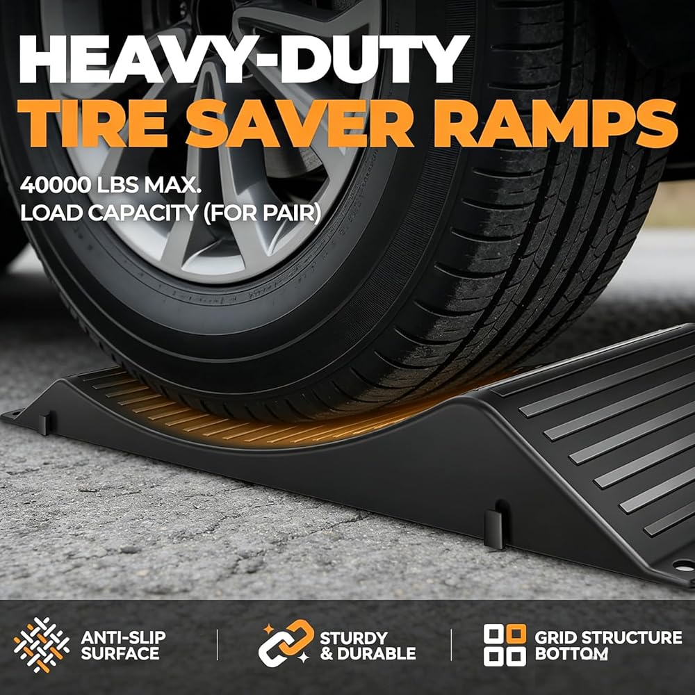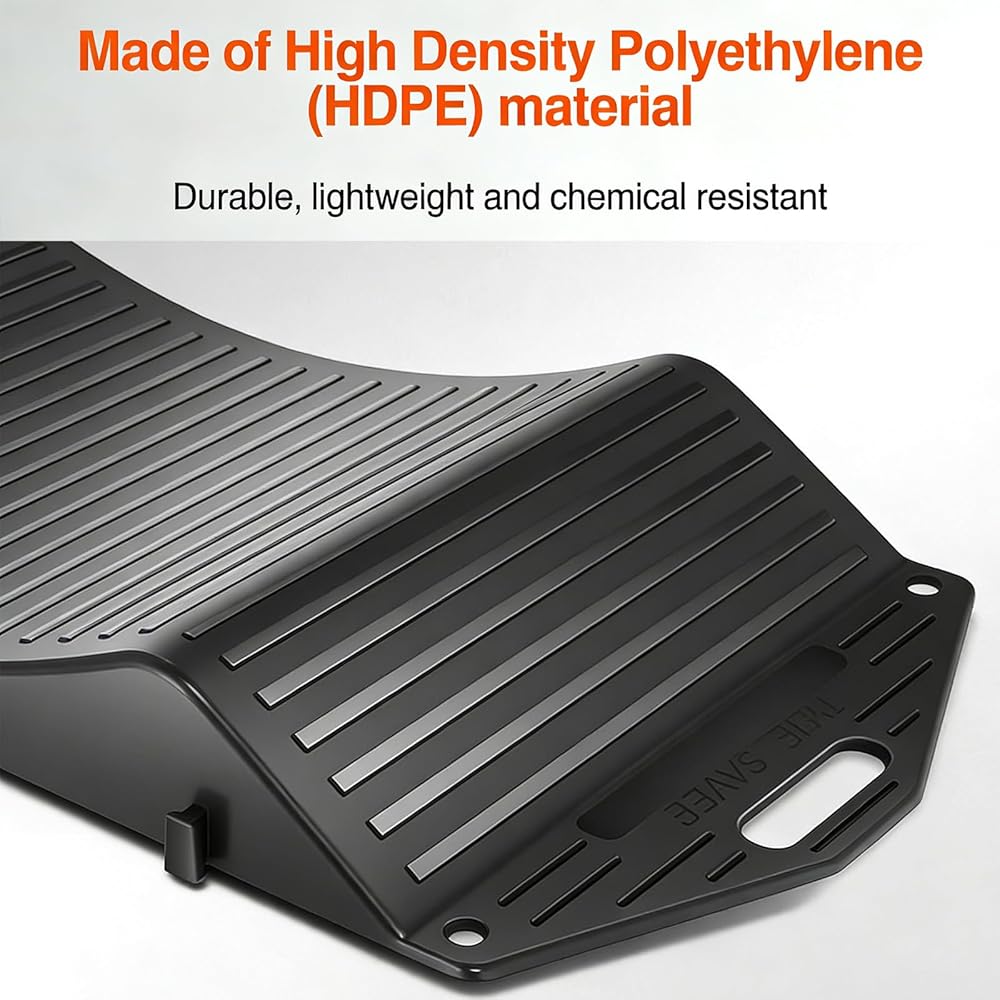 INDUSTRIAL-GRADE HDPE CONSTRUCTION: Manufactured from high-density polyethylene (HDPE), these tire ramps offer superior resistance to oil, grease, and extreme temperatures. The reinforced structure supports heavy static loads without buckling, providing a reliable garage parking aid year after year