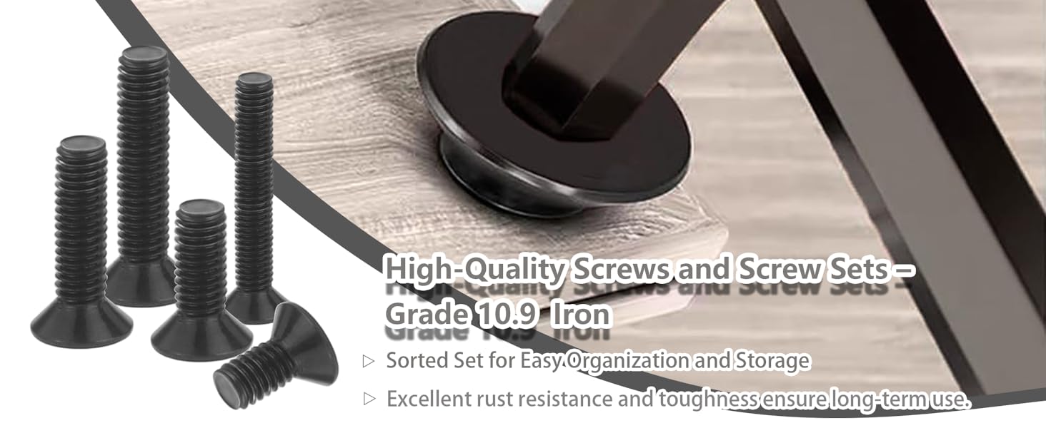 【Premium Quality Material】 Made of high-quality 10.9 grade Iron with a black oxide finish. These m4 countersunk screws provide outstanding hardness, anti-deformation, and corrosion resistance. Long-lasting socket head screws and hex bolts for heavy-duty or everyday use.