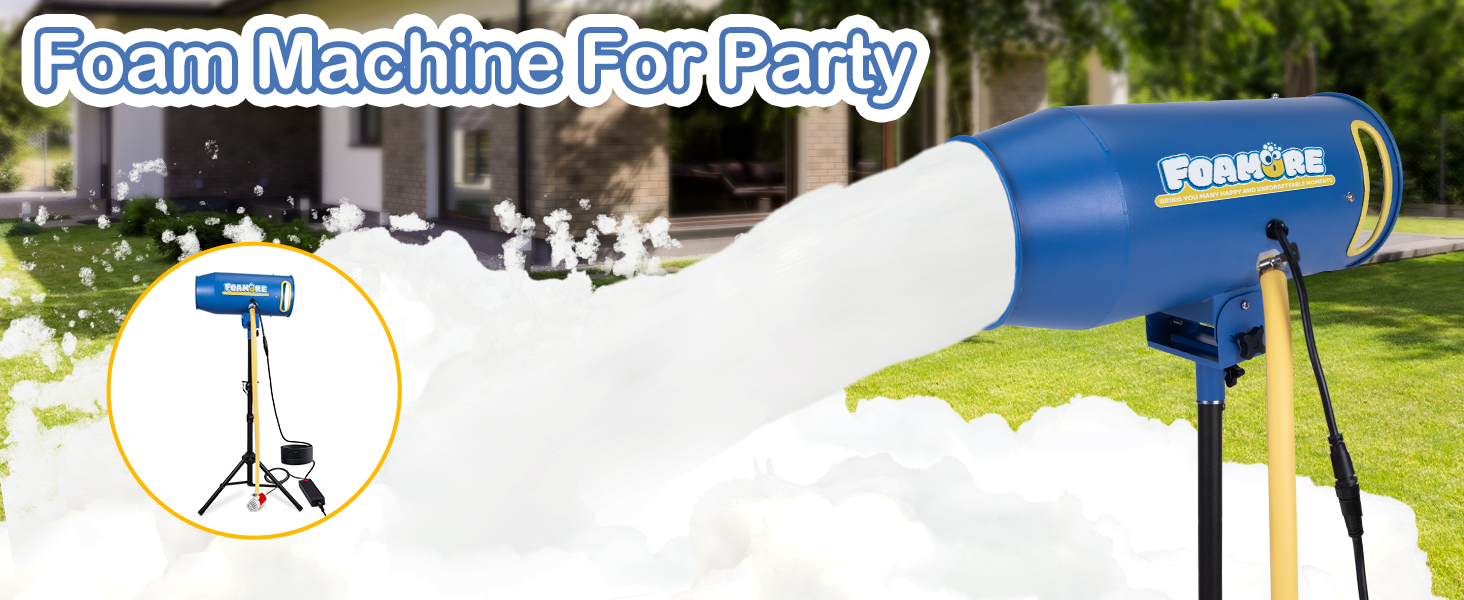 Making an Unforgettable Party - Large and fast foam output. This foam machine is suitable for 5-10 peoples's party, such as pool party, birthday party, business celebration and summer outdoor play activity, brings you an unforgettable party in summer (Please choose the foam powder of "Foamore" to make better foam effect).