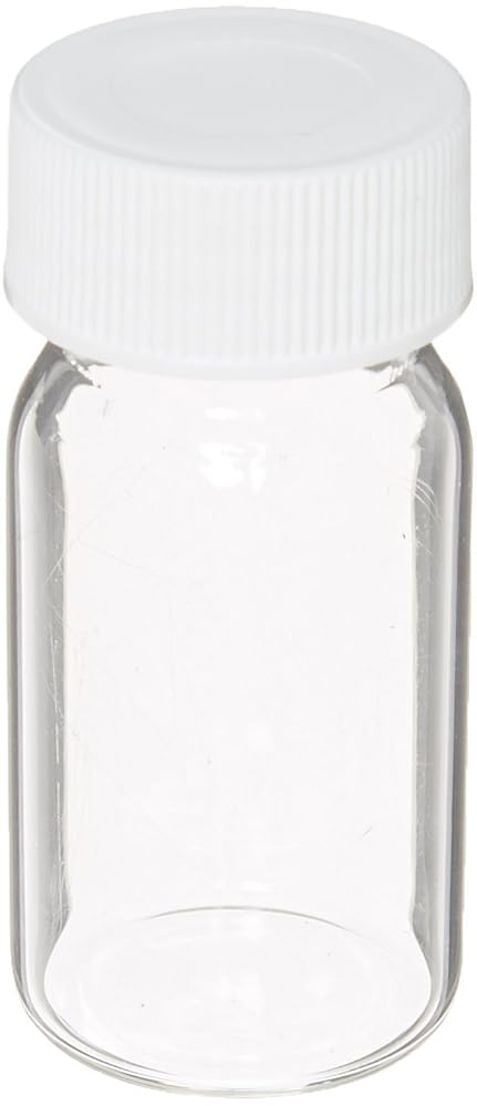 JG Finneran 9-121 Clear Borosilicate Glass Standard VOA Vial with White Polypropylene Solid Top Closure and PTFE Lined, 24-400mm Cap Size, 20mL Capacity (Pack of 72)