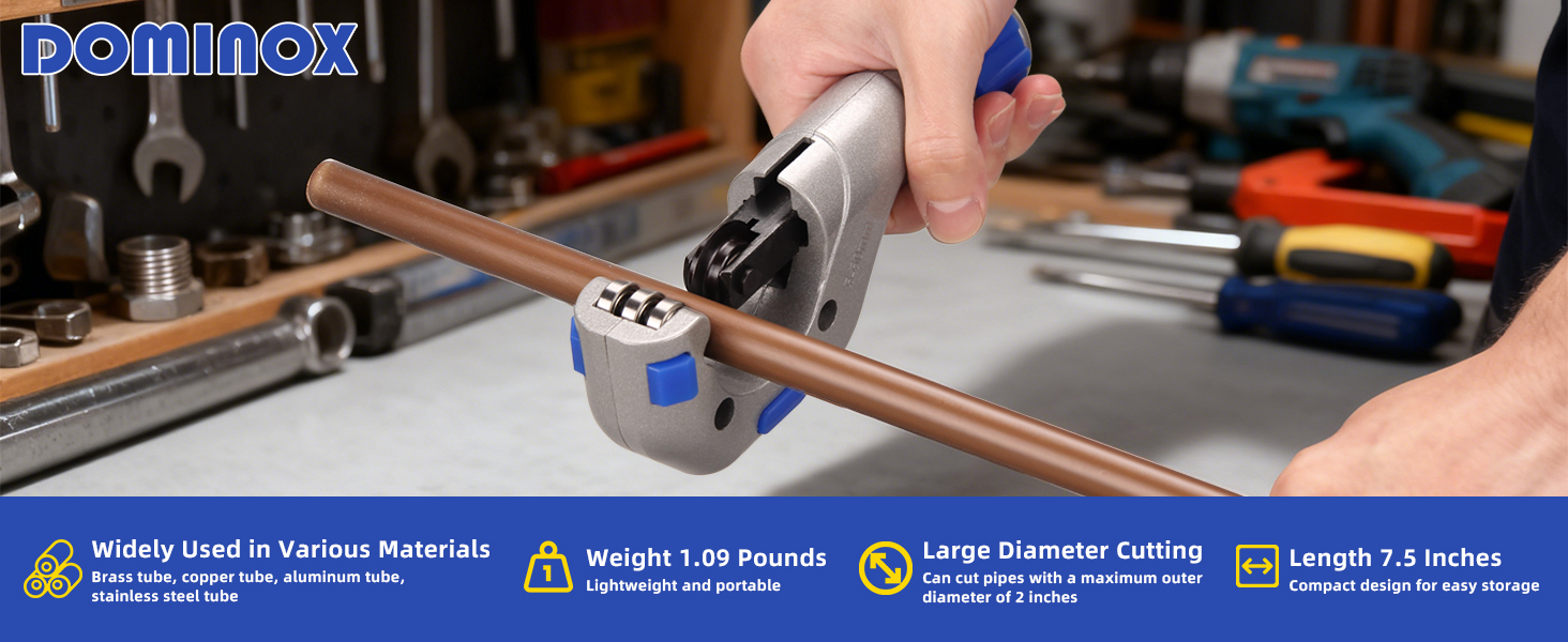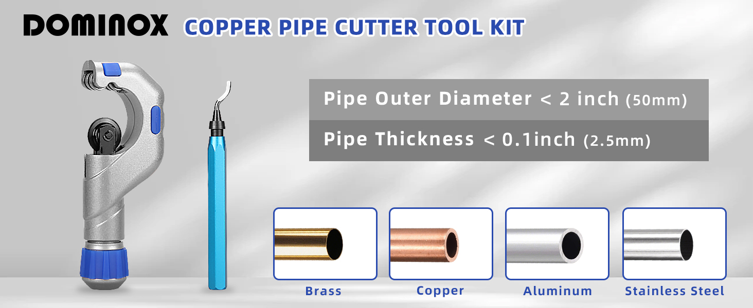 Tool Kit Included: DOMINOX tube cutter tool kit includes one copper pipe cutter and one deburring tool, ensuring that pipe cutting and burr removal can be performed simultaneously. The blades of both the copper pipe cutter and the deburring tool are replaceable, greatly enhancing cost-effectiveness.