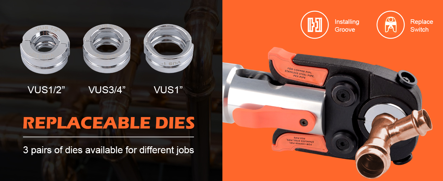 Designed for Accessibility in Confined Areas:The press tool features a compact head design. This allows for operation in limited spaces, such as near walls or within cabinets, where clearances are small
