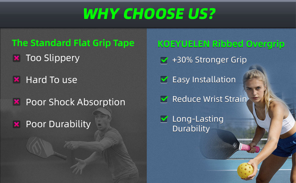Ribbed Non-Slip Pickleball Overgrip for Max Control: Upgraded ribbed texture delivers 30% stronger grip than flat overgrips, eliminating slippage in sweaty training and matches. Ideal for pickleball, tennis, and badminton players of all levels