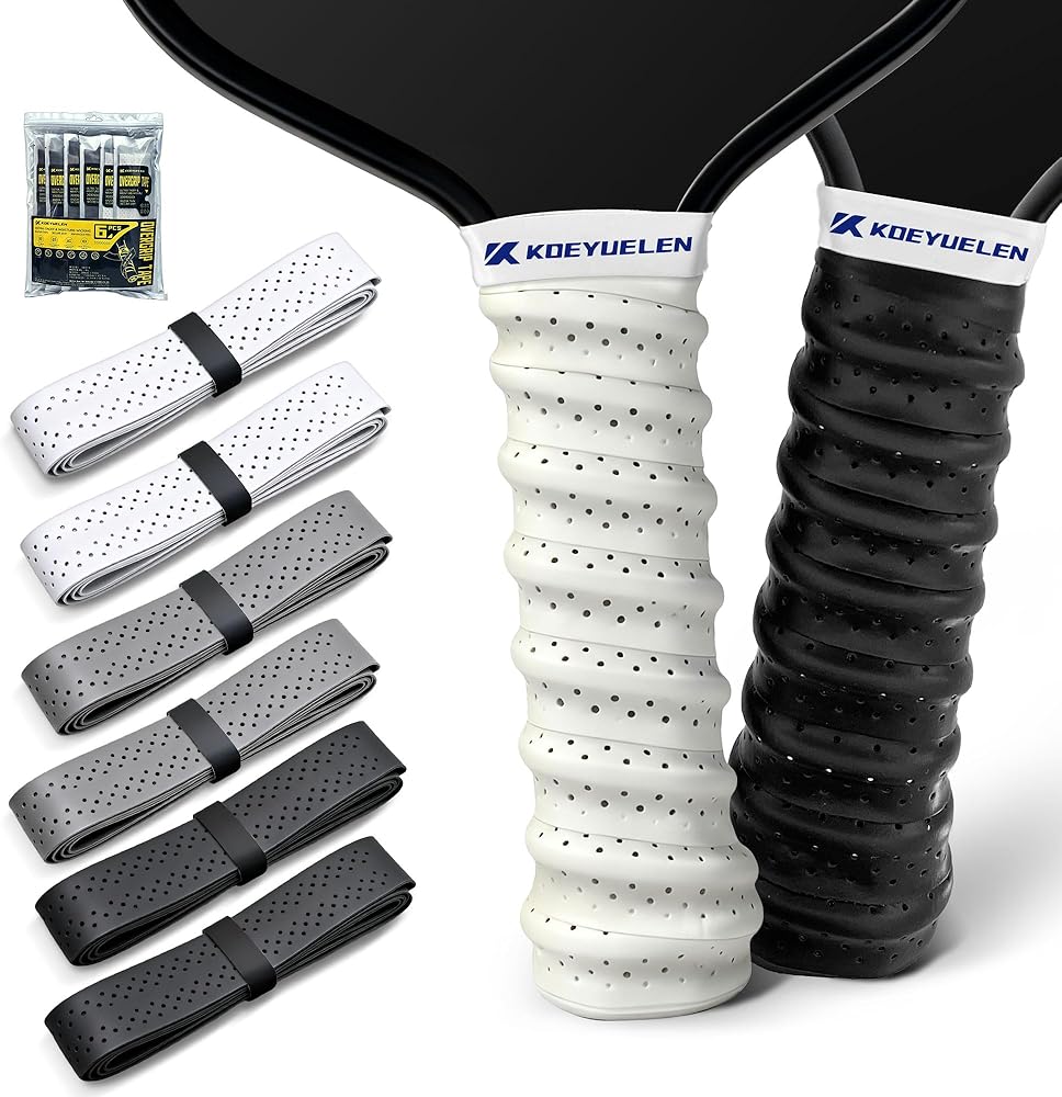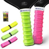 Elevate your sports gear with KOEYUELEN Ridges Overgrip 6-Pack (Rainbow Colors)—a stylish blend of vibrant hues and reliable performance for pickleball, tennis, badminton, and baseball. Featuring 6 eye-catching neon colors (Black/White/Gray+Neon Pink/Yellow/Green), this colorful pickleball paddle overgrip adds a pop of personality to your equipment, making you stand out in team games or casual matches. Crafted with high-quality EVA material, it boasts ergonomic ridges for enhanced grip control and quick-dry, anti-slip properties to wick away sweat rapidly—ideal for outdoor sports lovers who value both style and functionality. Each overgrip is protected by dust-proof aluminum-plastic sealed packaging, keeping it clean and fresh for on-the-go use. The 32.2×1 inch universal fit ensures compatibility with all standard rackets and bats, while the tool-free installation (peel, wrap, fix in 3 minutes) makes it perfect for casual players and students. Whether you're hitting the court with friends or joining a pickleball tournament, this stylish sports grip combines comfort, durability, and personality—your perfect companion for every game.