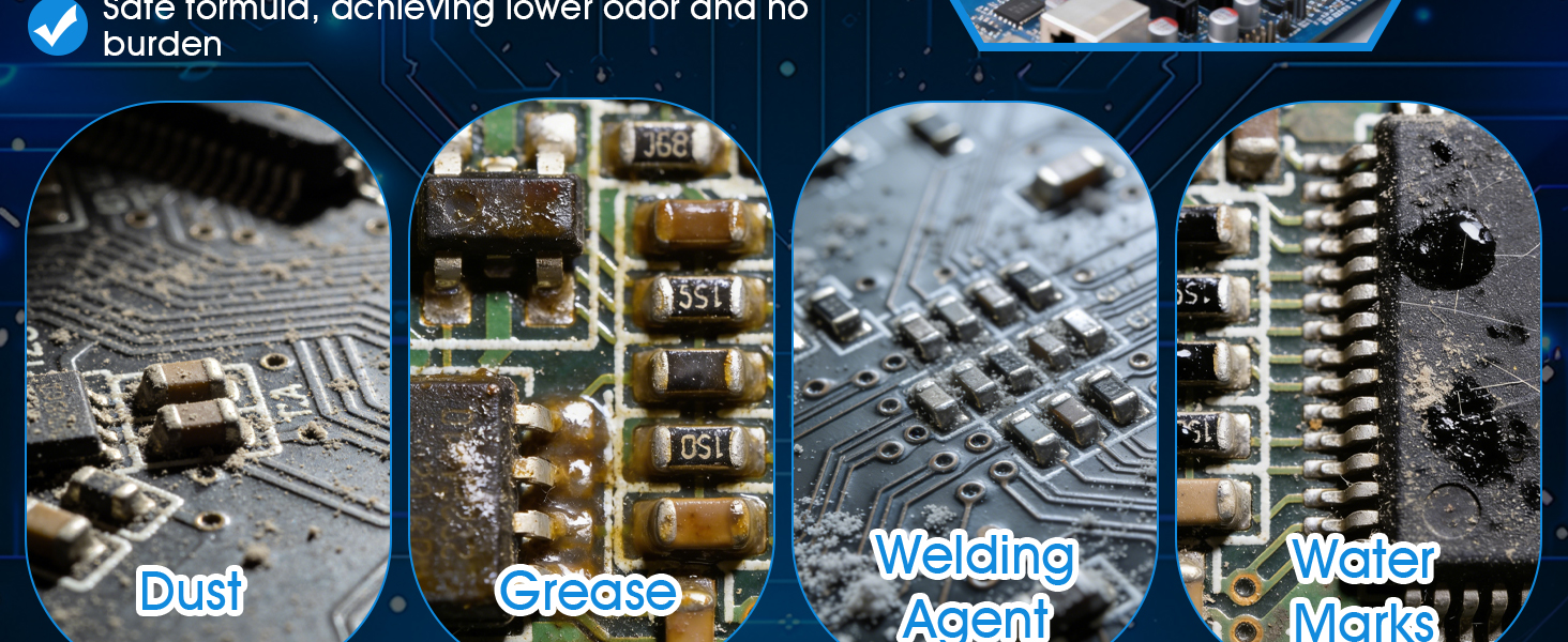 Widely Applicable: Suitable for cleaning various electronic devices such as computer motherboards, mobile phone repairs, industrial control boards, etc.