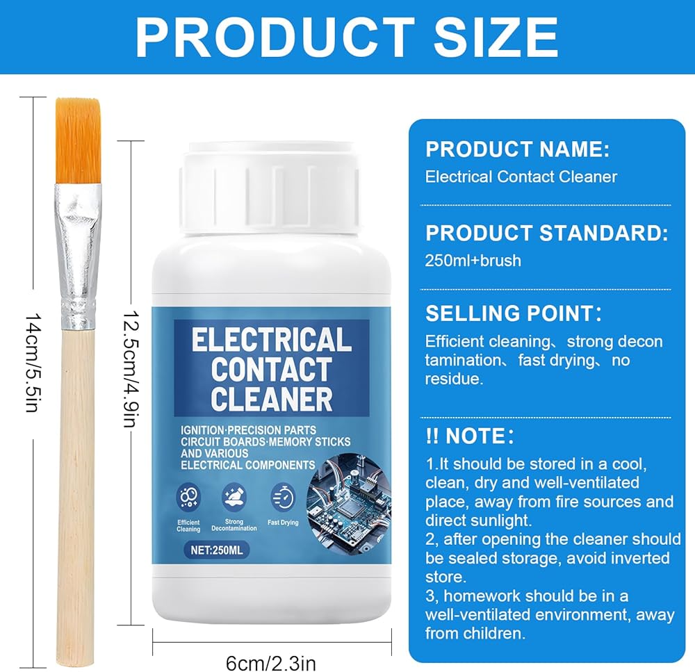 Easy To Use: Use the matching brush to apply contact cleaner directly to the oily area, wipe it repeatedly and let it dry.