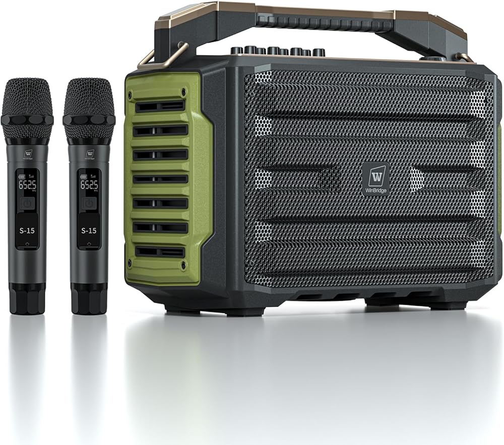 WinBridge K600 200W Portable Bluetooth Party Speaker with 2 Wireless Microphones - IPX4 Waterproof, Karaoke Machine, PA System for Outdoor/Indoor, Big Bass Pro Sound, Voice Amplifier for Teachers