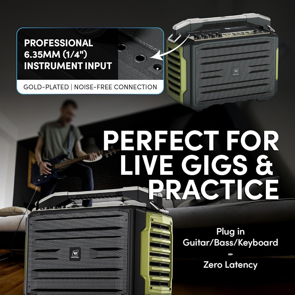 Bass EQ Portable PA: 10kg/22lb portable sound system with ergonomic handle + shoulder strap carry, manual Bass Boost switch (indoor/outdoor modes), and pro connectivity - ideal for professional buskers, teachers, tour guides,wedding hosts and family entertainers. Backed by WinBridge's 1-year warranty and lifetime technical support.
