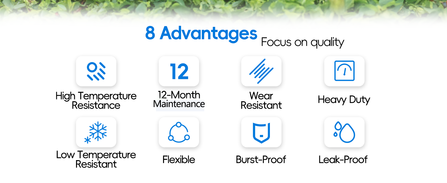 Stronger, More Flexible, Less Kinking: Newly upgraded rubber hose is made of three different characteristic materials tightly pressed together, which effectively improves the strength and flexibility so that it is less likely to kink. And the surface is wear-resistant, not easy to wear and tear even after repeated dragging, adapting to various outdoor environments
