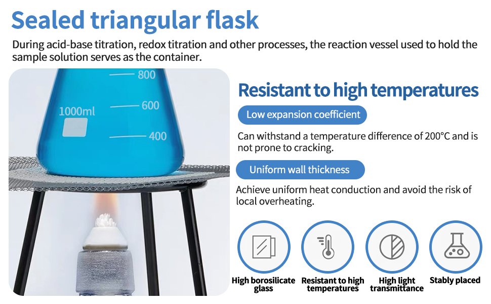 - Material: Thickened borosilicate glass, corrosion-resistant, heat-resistant, and capable of withstanding sudden temperature changes up to 200°C