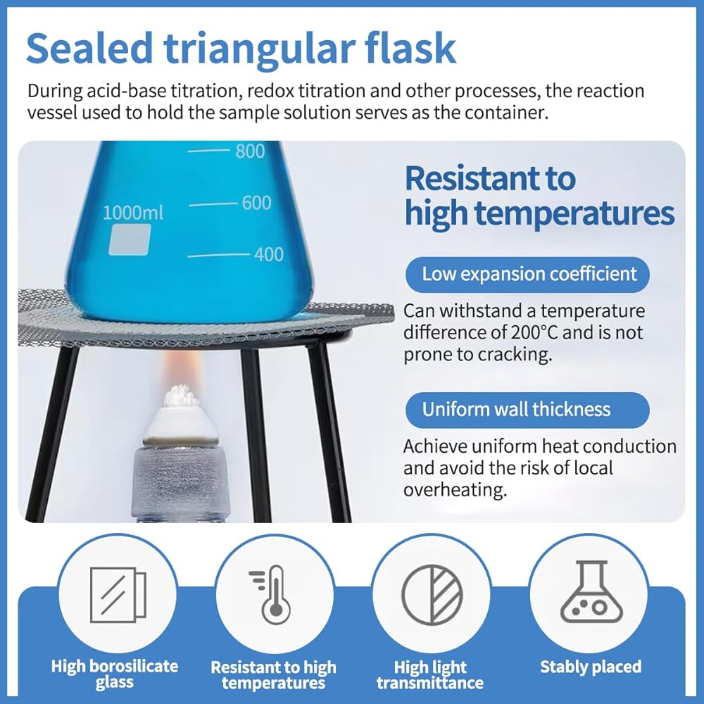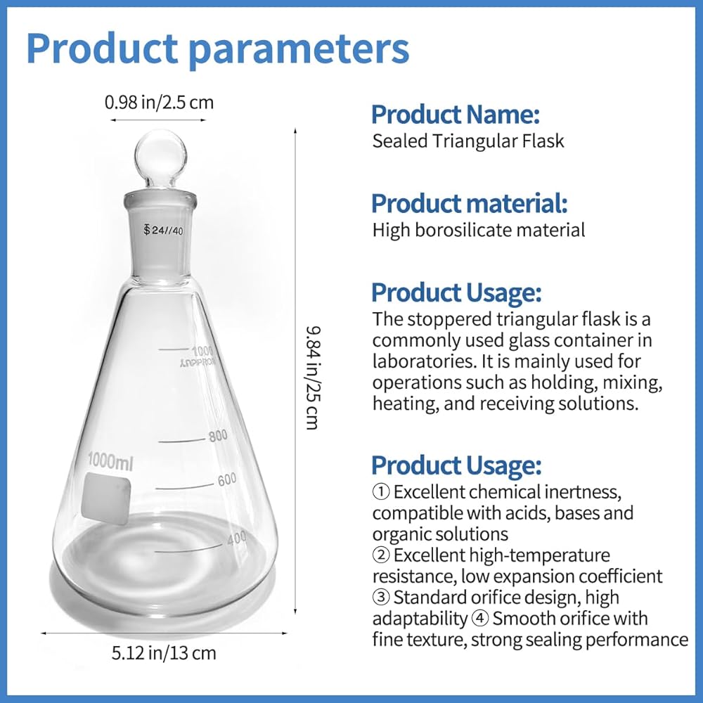 24/40 Glass Erlenmeyer Flask,Borosilicate Glass Heavy Wall Flask with Stopper & Standard Taper Outer Joint (1000ml