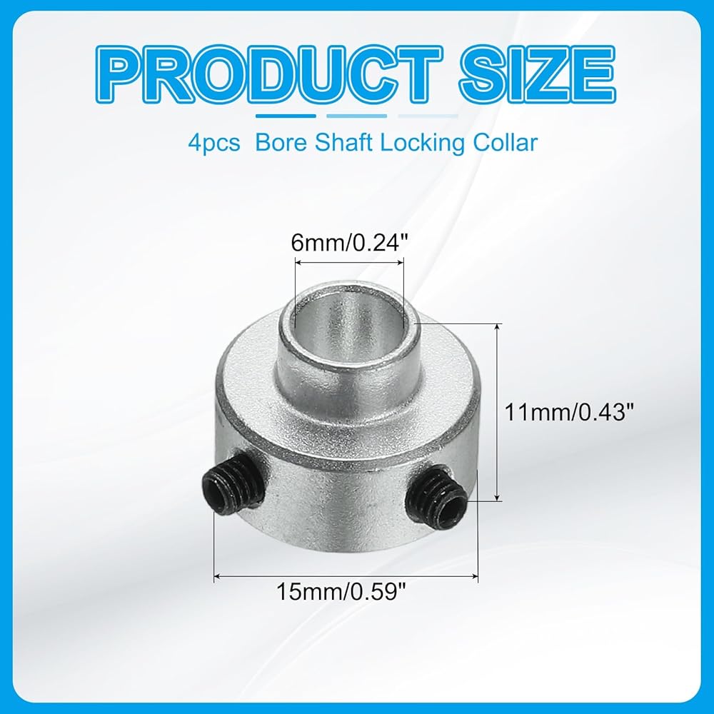 Aluminium Alloy Shaft Collars: Size: 6 x 15 x 11 mm / 0.24 x 0.59 x 0.43 inch (ID x OD x Thickness); Material: Aluminium Alloy; Color: Silver Tone