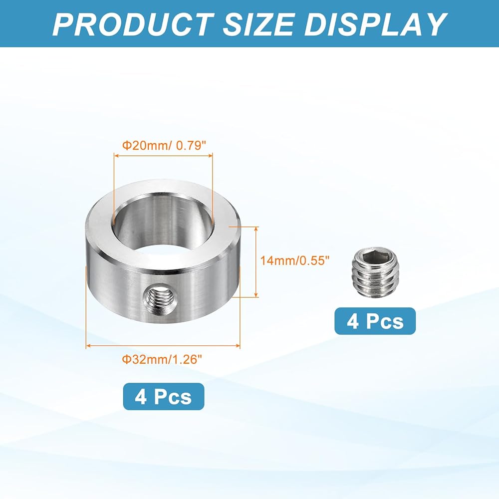 Shaft collars made of stainless steel have outstanding corrosion and rust resistance, can be applied at various environments such as outdoor rain. The excellent high strength of the 304 steel material provides great durability, ensuring the long-lasting working performance even in high load work.