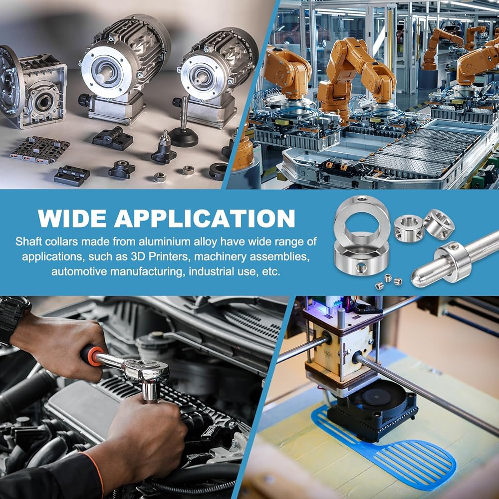 A shaft collar is a round, clamp-like ring that secures to shafts or rods to axially position components or act as a mechanical stop. Commonly used in machinery, motors, it provides a simple, adjustable attachment point.