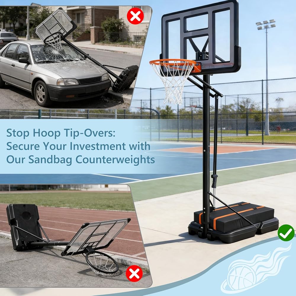 Convenient Filling: The sandbag features a long zipper on the top for easy filling with sand, gravel, or other heavy materials. This reduces the risk of the basketball stand collapsing and minimizes the possibility of property damage or personal injury caused by falling basketballs.