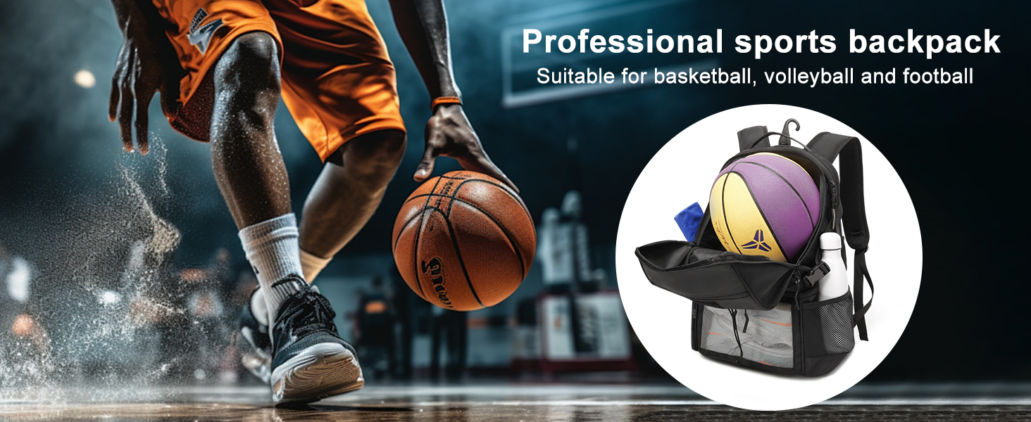 [Durable Construction]: Light weight sports basketball backpack is made of polyester and nylon fabrics, which has good tear resistance and waterproof performance, is sturdy and durable, and can resist rain, mud and dirt. The back and shoulder straps are designed with breathable thick foam pads to effectively relieve shoulder pressure and ensure comfort even for long-term carrying.
