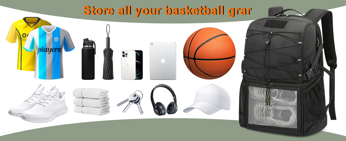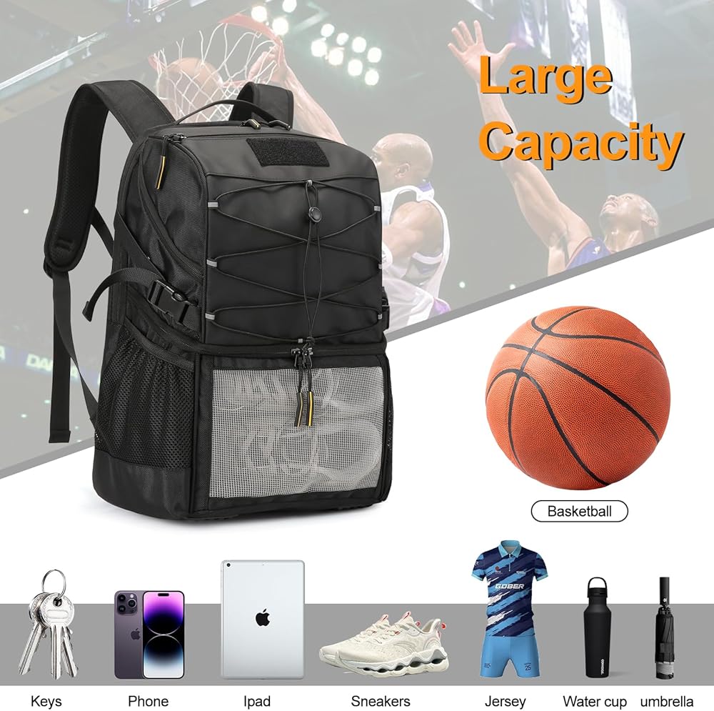 [Multifunctional Backpack]: Boys basketball backpack has a multi-compartment and multi-pocket design. The main compartment can hold laptops and clothes, the small pocket can hold mobile phones and keys, and the side mesh pocket can hold umbrellas and water bottles. It meets all your needs for placing daily necessities and can be used as a daily backpack.