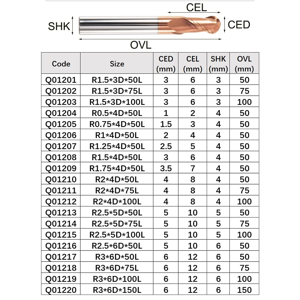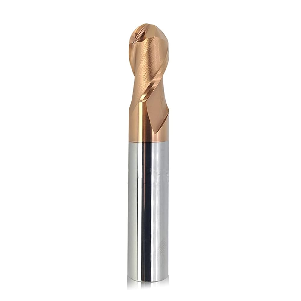1Pieces Nano Micro Grain Coating Carbide 2 Short Flute Ball Nose End Mills HRC55 Tungsten Carbide Ball Nose End Mill for 3D Engraving Stainless Steel Iron Copper Milling Cutter