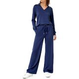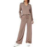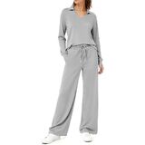 Crafted from premium, breathable fabric, this women's 2 piece lounge set offers superior comfort and style. The set includes a long sleeve V-neck top and high-waisted wide-leg pants with pockets. Versatile enough for lounging, jogging, or casual outings, it can be worn together as a chic sweatsuit or styled separately for endless looks