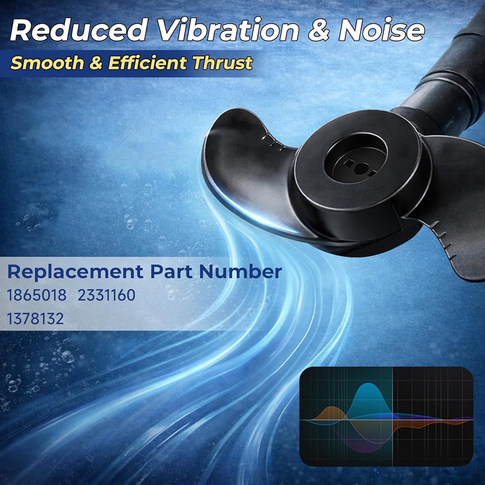 【Thickened Plastic Material】: Crafted from high-toughness thickened plastic, this trolling motor blade boasts strong impact and wear resistance, resists collisions with underwater obstacles such as rocks and stumps. It also helps reduce power consumption, vibration and noise, helps improve your hook-up rate