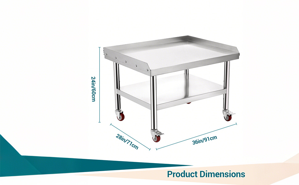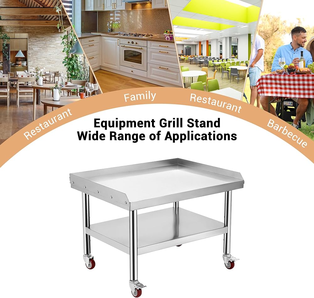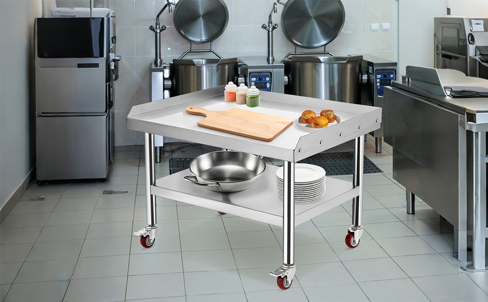 Heavy-Duty 1000 lbs Capacity - The top shelf supports up to 1000 lbs, making this stainless steel work table ideal for holding grills, mixers, and other heavy kitchen equipment securely.