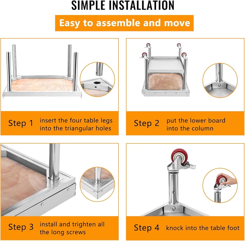 Easy Assembly & Versatile Use - Comes with all hardware and clear instructions for quick setup. Perfect as a prep table, grill stand, or storage solution for both home and commercial kitchens.