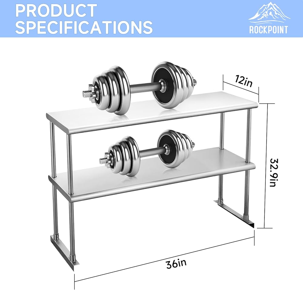 ROCKPOINT stainless steel overshelf for Prep Work Table 12"D x 36"W,commercial Double Overshelf in Kitchen, Home ,Restaurant,Garage with countertop Capacity 360lb