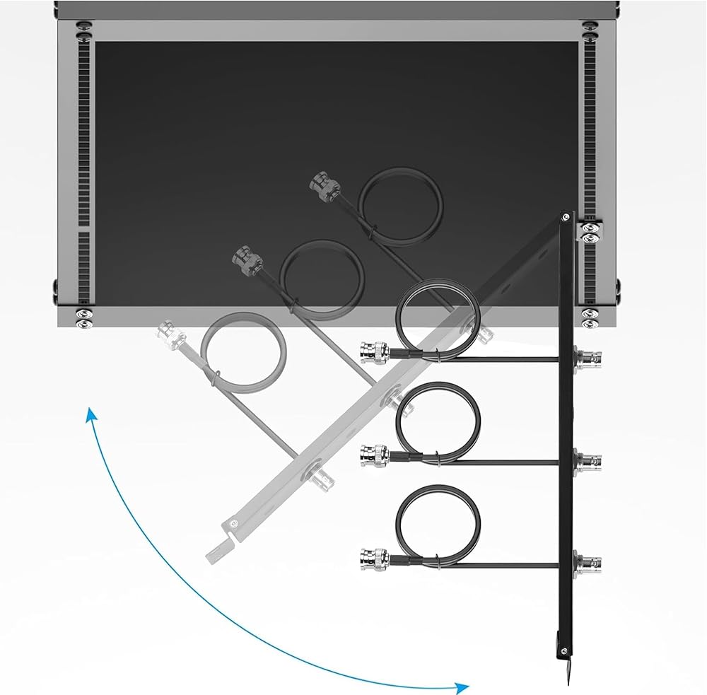 Hinged Patch Panel for Easy Access:The hinged design on both sides of the 1U patch panel simplifies installation, inspection, and maintenance. This BNC antenna relocation kit fits all standard 19-inch racks, allowing convenient front-mount antenna positioning.
