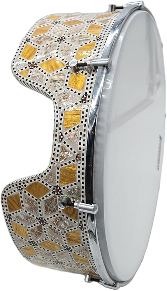 The Dof is a large, Egyptian frame drum with a Plastic head that can be tuned The Mother Of Pearl Gawharet El Fan bandir/ Dof has arrived from Egypt and It has a power beat professional transparent skin on top and 8 tuning lugs.