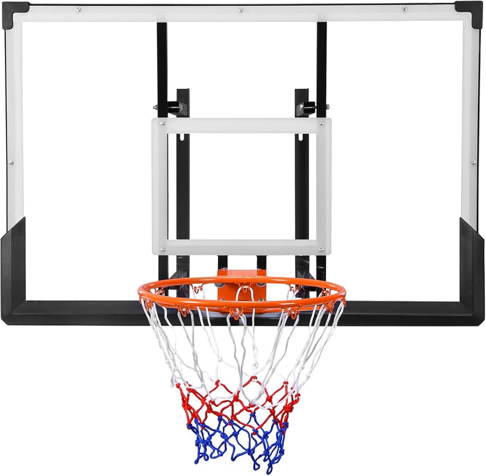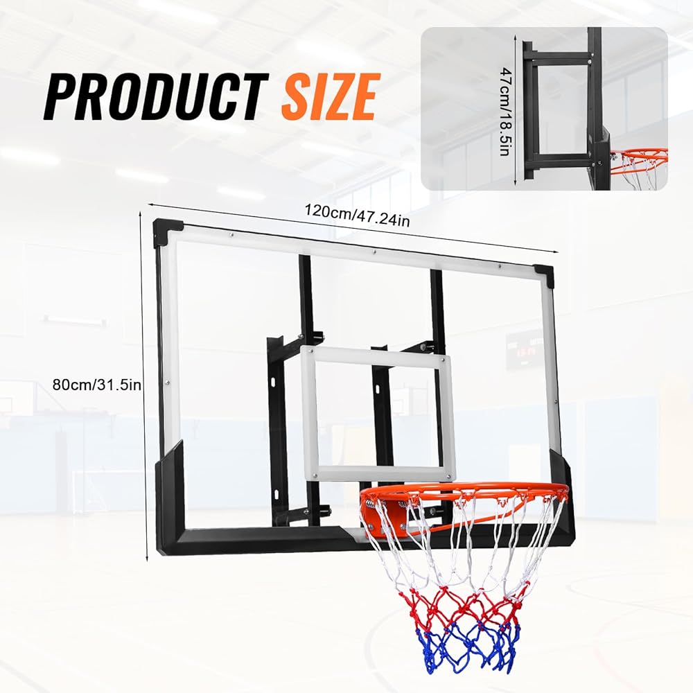 【Durable Construction】White PC backboard + alloy steel wall-mounted indoor/outdoor basketball hoop. Withstands long-term indoor/outdoor use without wear, perfect for backyard courts and community sports areas.