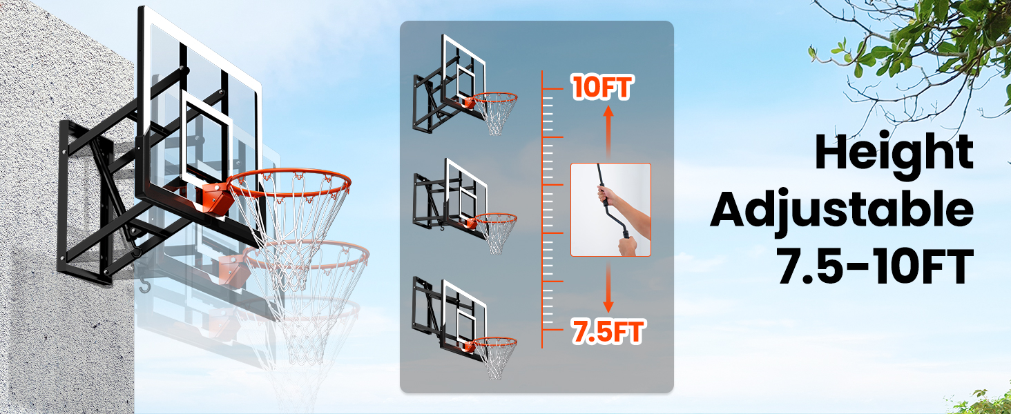 Quick Height Adjustment: Equipped with an upgraded adjustment system, the height can be smoothly adjusted from 7.5-10 feet with a simple turn of the push-crank, easily adapting to players of different ages and skill levels