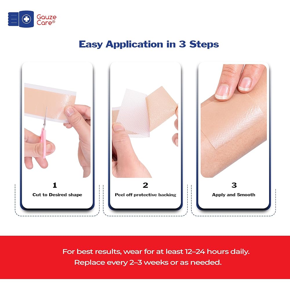 Applying our Silicone Scar Tape is easy and comfortable. Simply cut the silicon scar patches to your desired length, peel off the backing, and apply it directly to the scar. The soft, flexible material comforts your skin, staying in place throughout your daily activities. You can confidently wear it without any discomfort or restrictions.