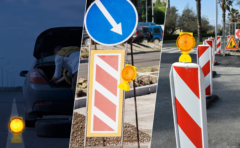 HIGH QUALITY & DOUBLE SIDES 360 °: Base is made with strong and durable ABS with scratch-resistant PC lens. Rotate 360°and double amber emergency lighting coverage during the day or nighttime, ensuring your safety on or off the road.