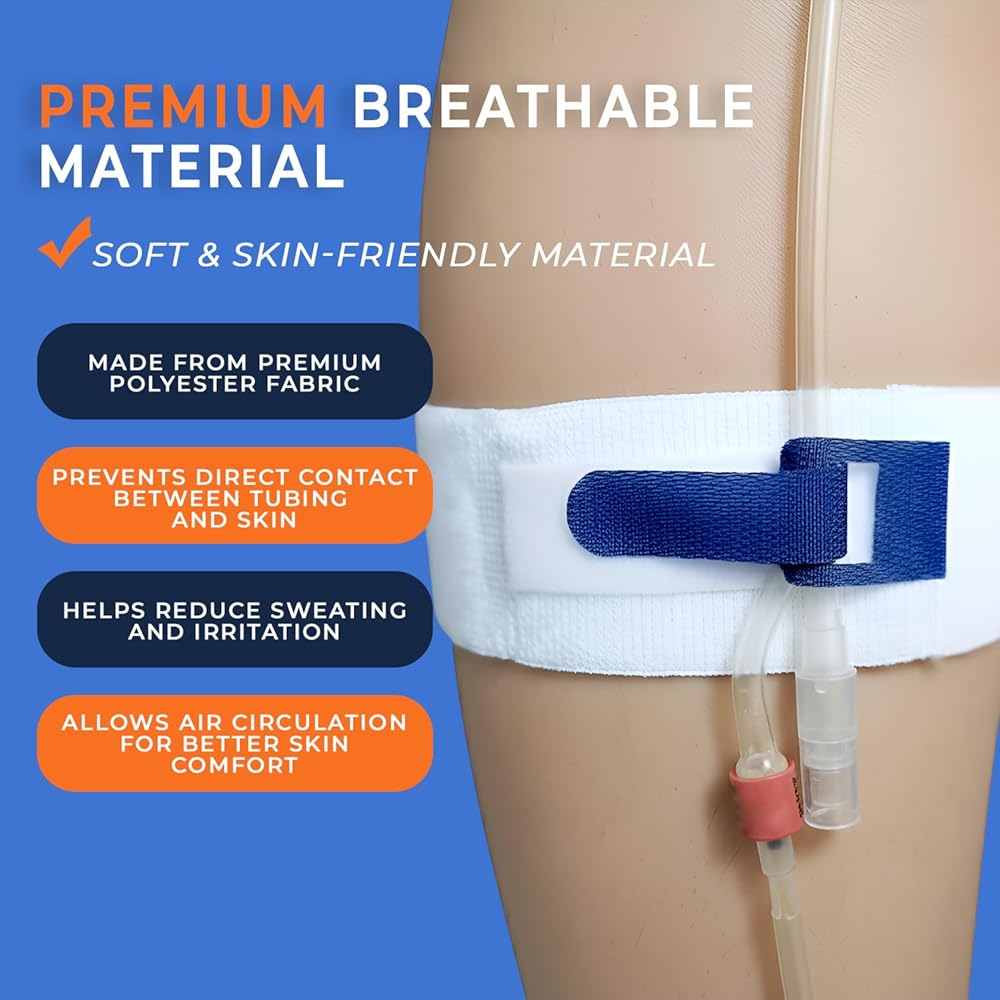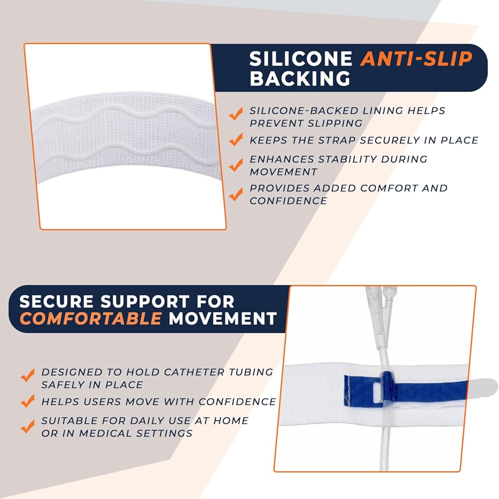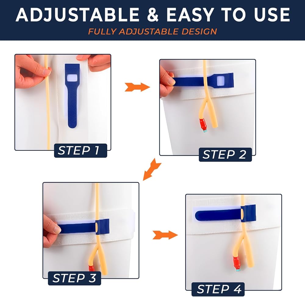 Stays Put, No Matter What: Say goodbye to slipping and twisting! Our adjustable band features a silicone grip that securely holds your catheter in place. It's designed to fit snugly and reliably, giving you confidence throughout the day and night.