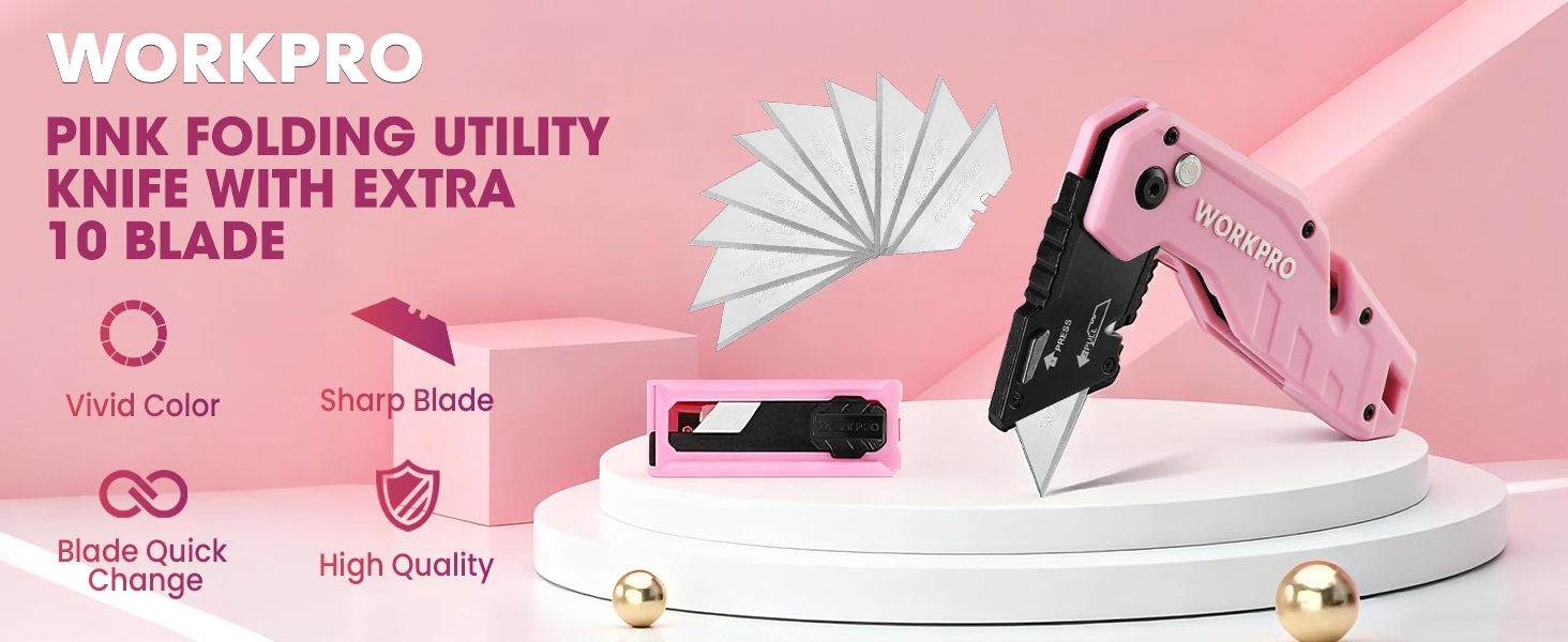 High Quality: The blade material is high-strength SK5. The blade can stay sharp for a long time without bending. It cuts paper, rope, leather, soft plastics, water pipes, and more. Reinforced nylon injection molding makes its pink handle more enduring. The non-slip handle is ergonomic and comfortable to use