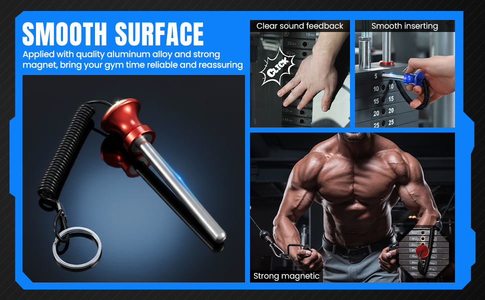 Heavy Duty and Magnetic: these pins are not just robust but also feature a magnetic tip, providing additional security by sticking firmly in place; This heavy duty construction minimizes slippage, enhancing safety during workouts