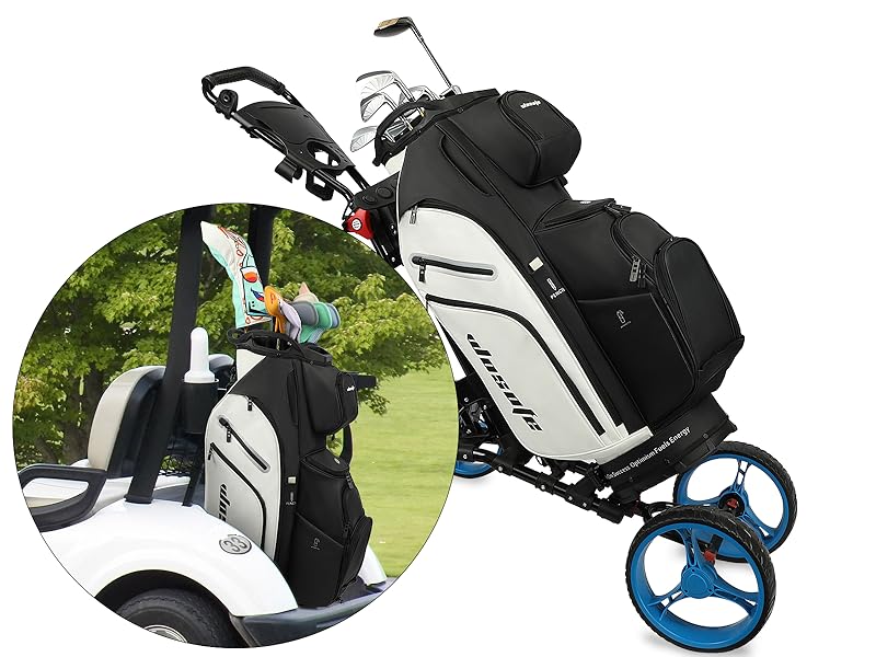 Multifunctional & convenient design: Our golf cart bag is equipped with 10 zipper pockets and cooler compartment to store your equipment and accessories, ensuring sufficient storage capacity, The golf bag comes with a portable rear handle to help you transport the club easily.