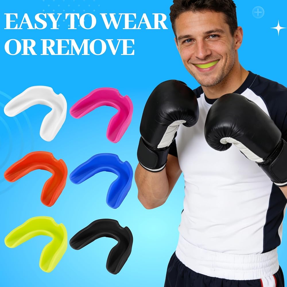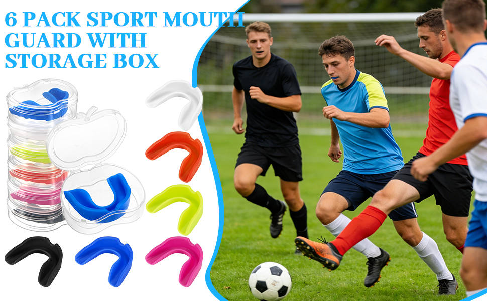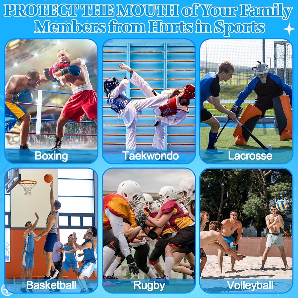 Sports mouth guard: The package contains 6 pcs colorful moldable sports mouth guard, and each silicone mouth guard is equipped with a transparent storage box, which is convenient for storage after use and keeps clean and hygienic. which is suitable for teenagers over 12 years old and adults, but not for children