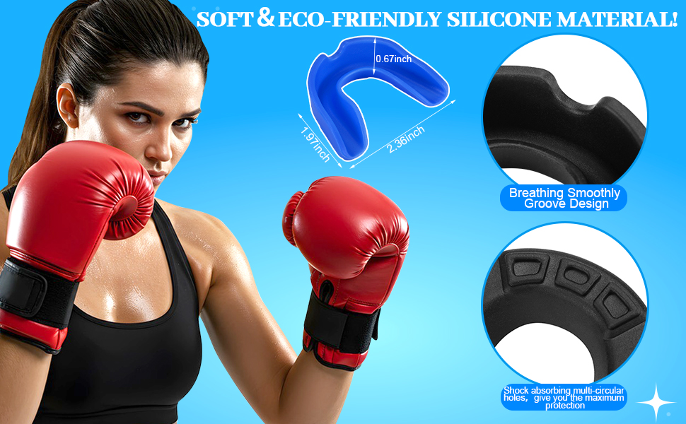 Material: Our sports mouth guard are made of silicone, which is soft and high temperature resistant, will not rub the mouth, and is comfortable to wear. Before and after use, please soak the mouth guard in hot water (Hot water after boiling) for one minute. It is a simple way to keep the mouth guard clean and reusable
