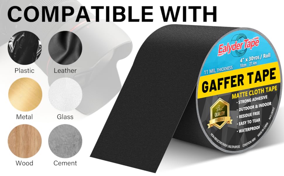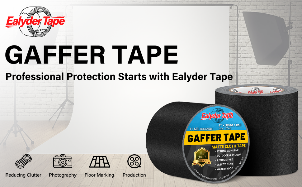 Professional Grade Gaffers Tape — 4 INCH x 30 Yards 1 Roll black gaffers tape. Crafted from sleek matte black tape with a glare-free, non-reflective surface, durable and long-lasting.