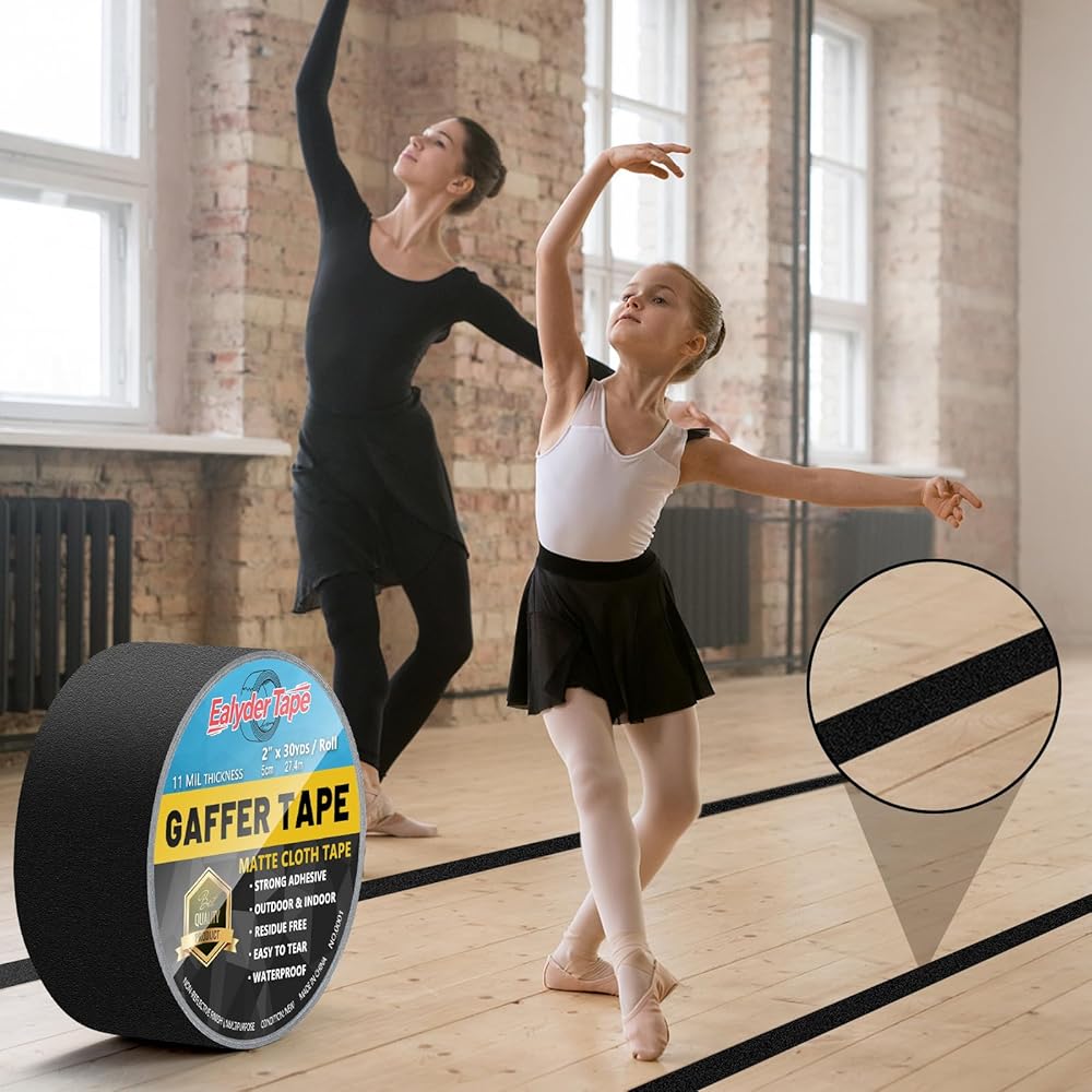 Multi-Purpose – Whether you're managing stage setups, securing lighting cables, labeling gear, handling minor auto repairs, organizing office wires or crafting at home, this gaffer tape delivers reliable hold without damage. Its matte black finish ensures it stays discreet in professional environments like studios, theaters, and AV setups.