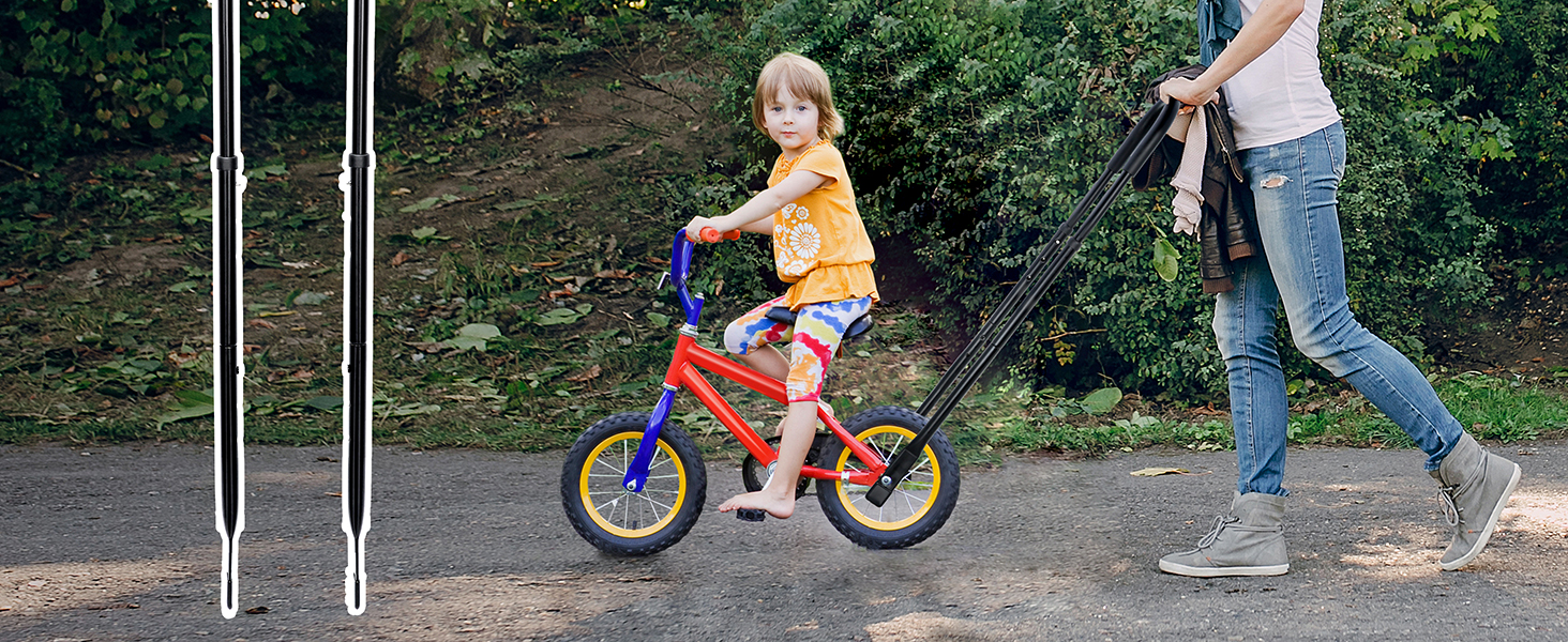 IDEAL FOR TEACHING KIDS TO RIDE: Bike safety trainer handle helps kids learn to ride safely and quickly without training wheels. It lets parents guide and control the bike easily, no more hunching over or chasing, allowing you and your child to enjoy the learning process together
