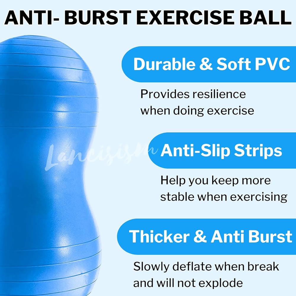 🔒 PREMIUM SAFETY & DURABILITY-Crafted from child-friendly, anti-burst PVC with a non-slip hypoallergenic surface, our peanut ball outperforms standard yoga balls. It's rigorously tested to withstand vigorous use, free from BPA, phthalates, and toxins. The reinforced design ensures long-lasting reliability for therapy clinics or high-energy households.