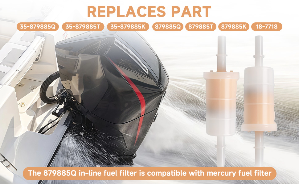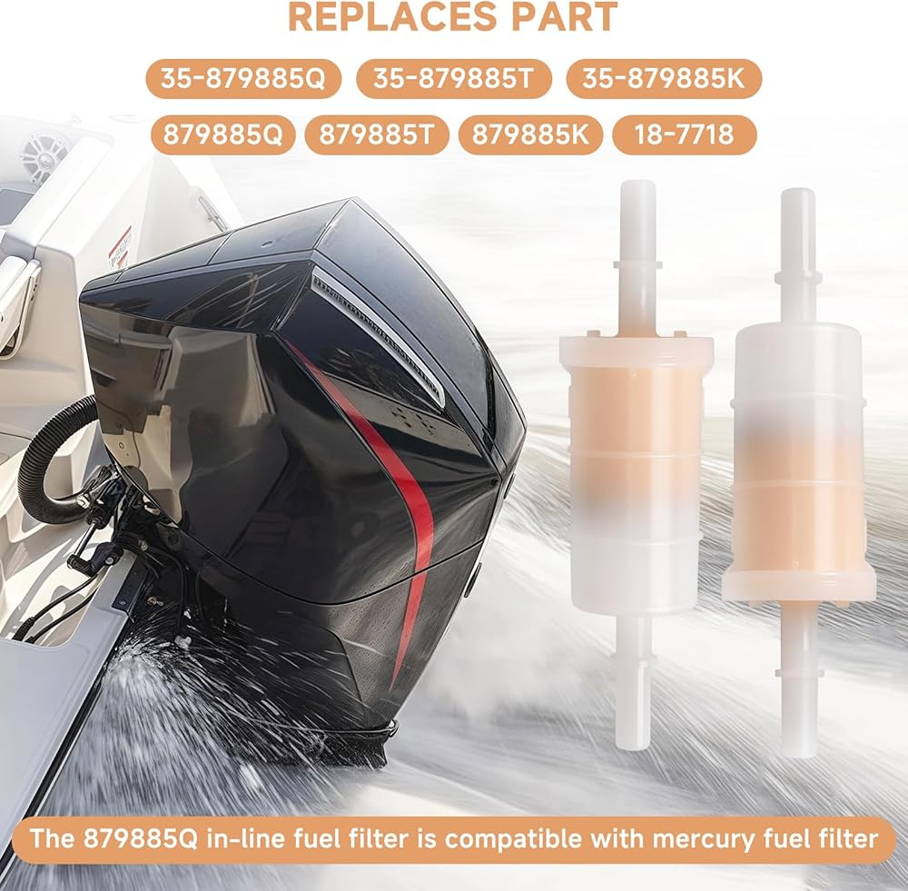 Replaces Part:Compatible with Mercury marine inline fuel filter 35-879885Q, 35-879885T, 35-879885K, 879885Q, 879885T, 879885K, and compatible with Sierra 18-7718