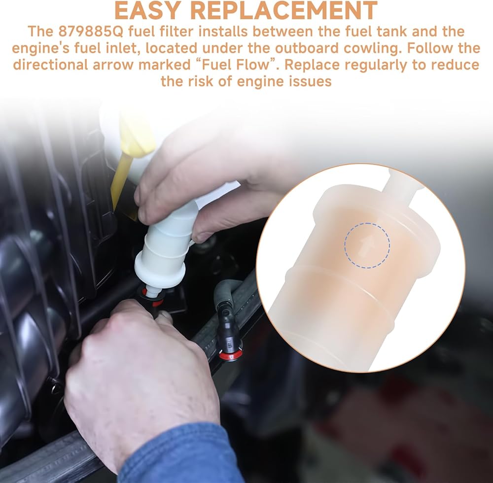 Easy Replacement:Installs between the fuel tank and the engine's fuel inlet under the outboard cowling. Follow the arrow marked “Fuel Flow” for correct installation. Regular replacement helps prevent starting issues and performance loss