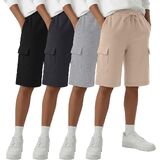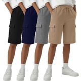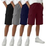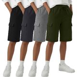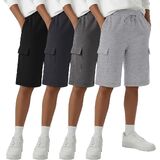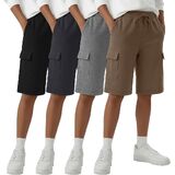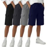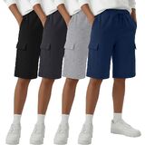 4 Pack Boys Cargo Shorts Kids Bermuda Casual Athletic Sweat Shorts with Pockets Elastic Waist Drawstring in Kuwait