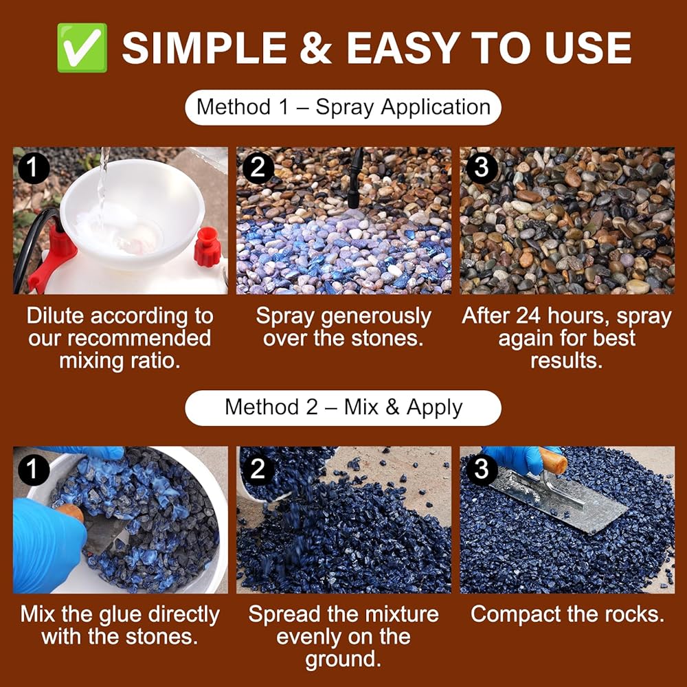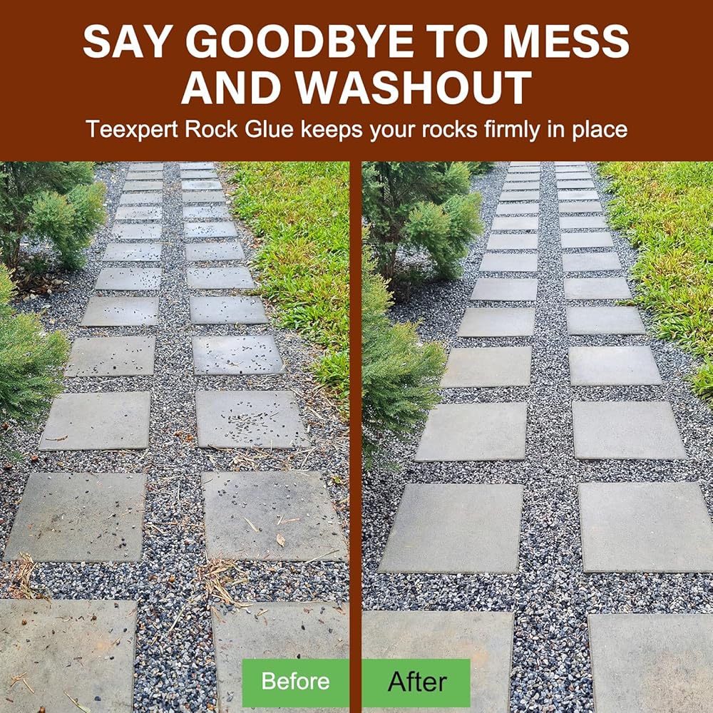 【Tired of Messy, Shifting Gravel?】 Loose stones constantly spreading onto lawns and walkways are frustrating. Our rock glue for landscaping solves this by locking stones in place, ensuring your landscape stays neat and defined. This rock glue for pea gravel prevents shifting, giving you a professional, stable surface without the daily hassle of sweeping stray rocks back into place.