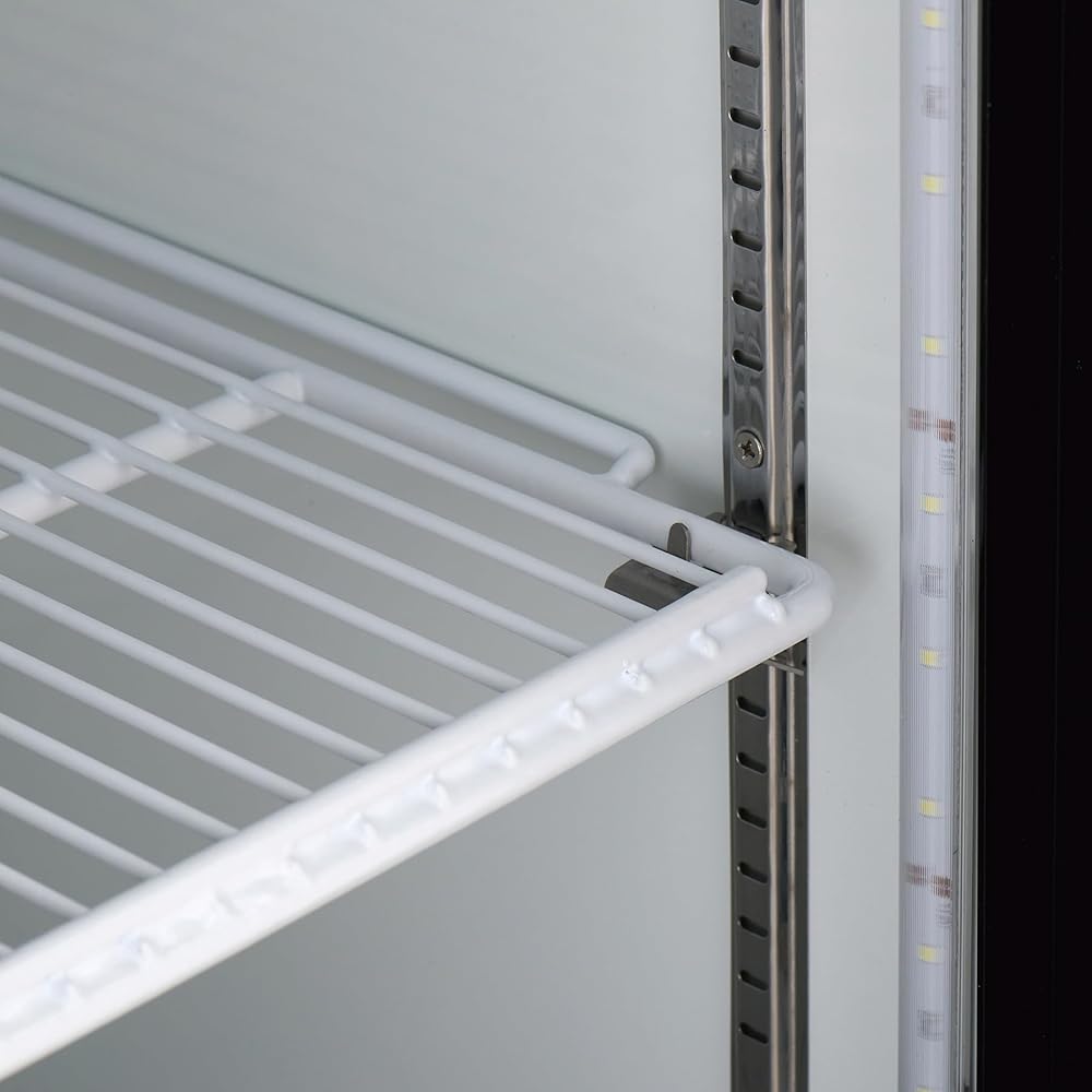 • {AMPLE STORAGE} This commercial refrigerator comes standard with (8) heavy-duty adjustable epoxy coated wire shelves. Each shelf has a 90 lb. weight capacity - perfect for merchandising soda, water, energy drinks, and more!