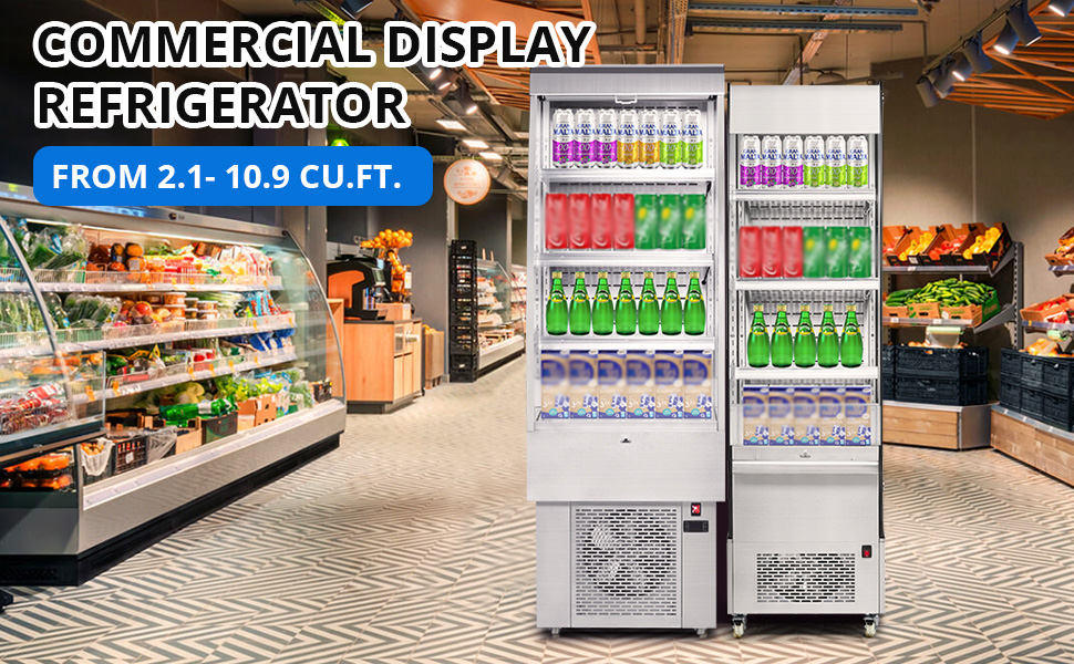 【7.77 Cu.Ft Commercial Cooler】 This upright display refrigerator offers generous 7.77 cubic foot capacity with clear glass door and LED interior lighting. Perfect for restaurants, cafes, convenience stores, bars, and bakeries to showcase beverages, desserts, and snacks while maximizing visibility and sales potential.