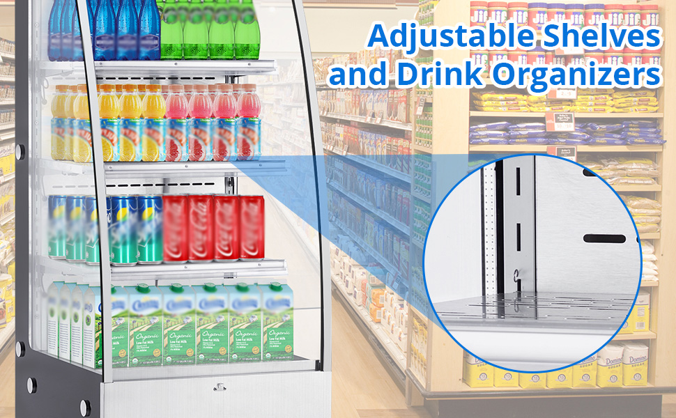 【Versatile Commercial Use】 Ideal merchandising solution for supermarkets, coffee shops, pizzerias, and food trucks. The durable steel frame supports heavy loads.